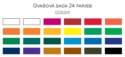 Gvaš boje američkog branda Royal & Langnickel s dobrom pokrivnošću i nježnim nijansama. Ukoliko želite da postignete što veći intenzitet boja, nemojte ih razrjeđivati vodom već ih uporabite odmah po istiskivanju iz tube. Gvaš boje mogu međusobno se miješati tako da dobijete veliki broj nijansi. Ukoliko želite da postignete efekat razlivanja, pre nanošenja boja pokvasite podlogu mokrom spužvom.