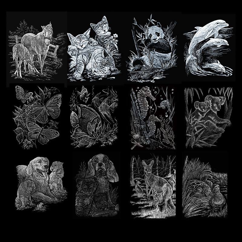 Introduction » KREATIVNI PRIBOR » Graviranje » Royal & Langnickel ostrugane slike u bloku od 12 kom - Prijatelji životinja