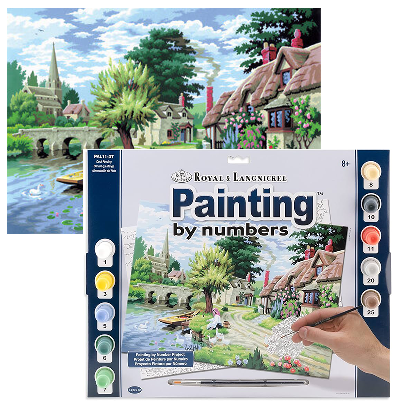 Slikanje po brojevima Selo na vodi 40,6x50,8cm Pakiranje sadrži: 1x kist, posudice s akrilnim bojama, 1x nacrtanu šablonu, 1x karton za bojanje ili 1x platno za bojanje. Potreban pribor: posuda za vodu, papirnati ručnici, plastični ili...